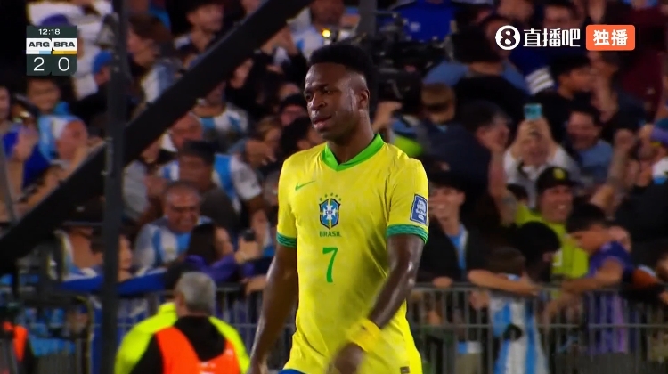 开场12分钟0-2落后阿根廷,维尼修斯无奈摇头
